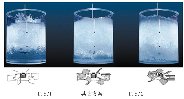 DT604攪拌器氣含率高,氧利用率也高一些,估計(jì)還可能節(jié)約10%以上的通氣量,這是十分可觀的。