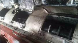舊裝置物料聚團抱軸嚴(yán)重混合傳熱死角較多 | 舊裝置物料抱軸情況 |