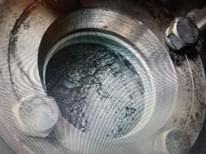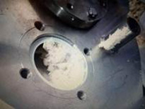 ① 液相物料進入筒體內(nèi)部,加熱到90C°,真空壓力:-0.090Mpa,運行15分鐘后,筒體內(nèi)部有少量結(jié)晶體,取樣分析合格后;