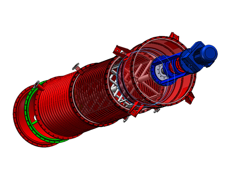 加熱室圓筒體內(nèi)表面,必須經(jīng)過(guò)精加工。保證刮板與加熱面之間的小隙在1.5±0.3毫米左右。