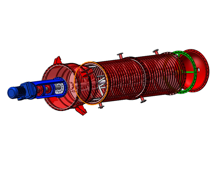 4、改變刮板溝槽旋轉(zhuǎn)方向,可以調(diào)節(jié)物料在蒸發(fā)器的打理時(shí)間。