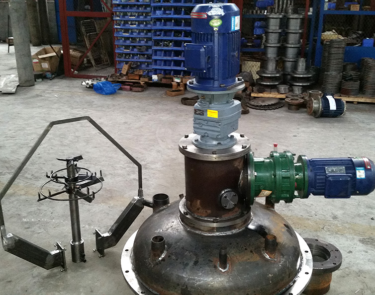 在化學工業(yè)領域,許多具有復雜工藝變化的反應涉及到高粘度流體與低粘度流體的混合、高粘度流體的乳化、其它物質在高粘度流體中的分散等問題。傳統(tǒng)的大直徑低轉速攪拌器(如框式攪拌器、錨式攪拌器、螺帶式攪拌器等)只能解決高粘度流體的宏觀混合問題,而分散度則嚴重不足,所以,許多單元操作需要通過長時間的攪拌來達到目的,其混合質量和效率十分低下;而以渦輪攪拌器為典型代表的許多小直徑高轉速攪拌器具有十分優(yōu)良的分散性能,但其作用范圍小,滯留于筒體壁的物料無法與攪拌作用區(qū)域內的物料進行充分的傳遞,致使部分物料始終得不到充分的混合與分散。