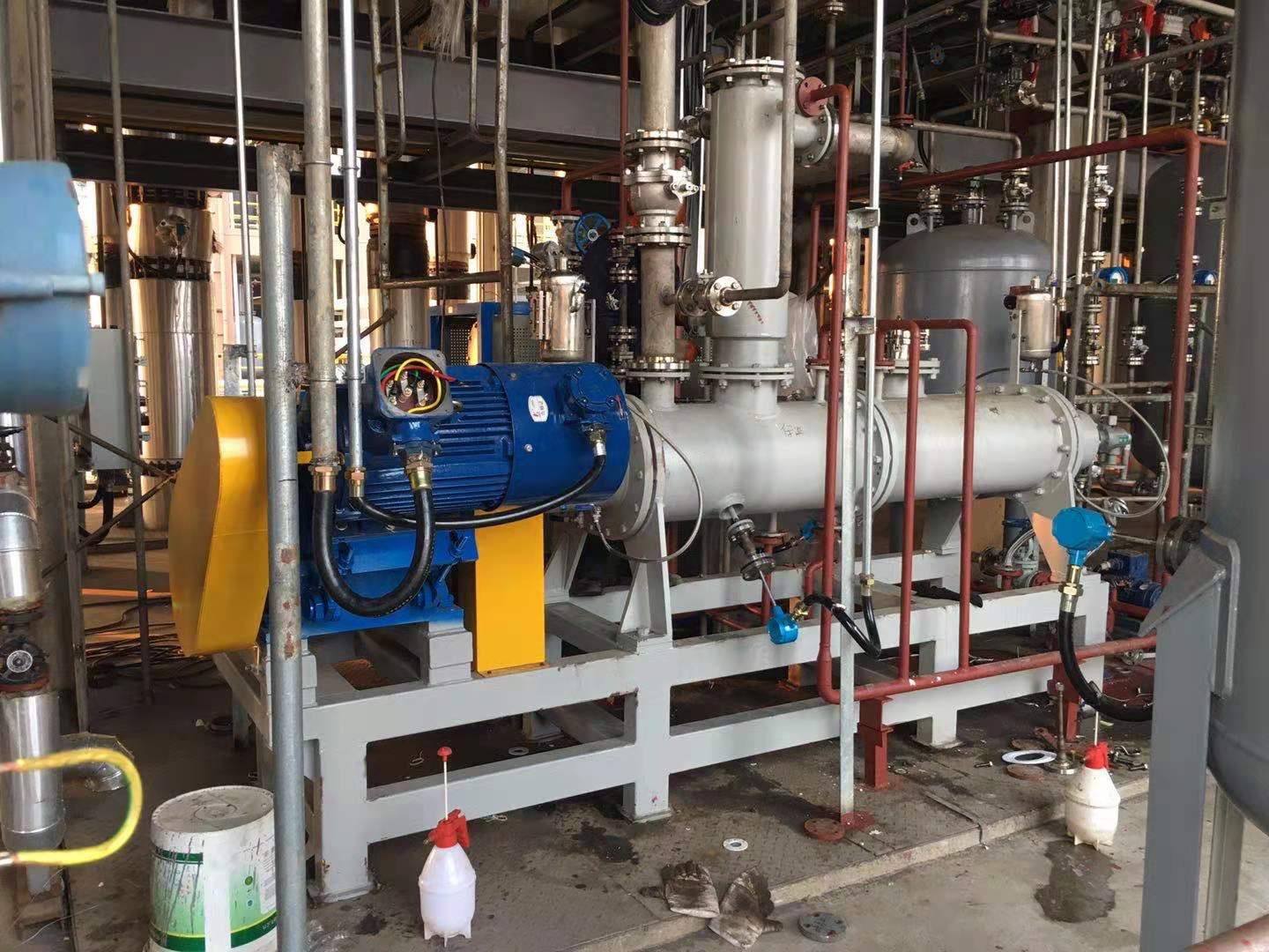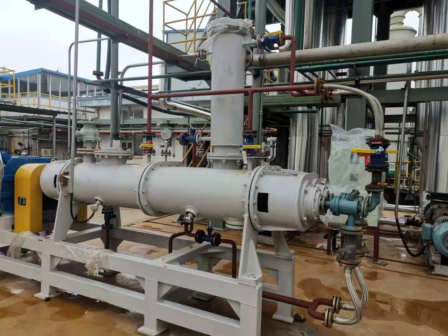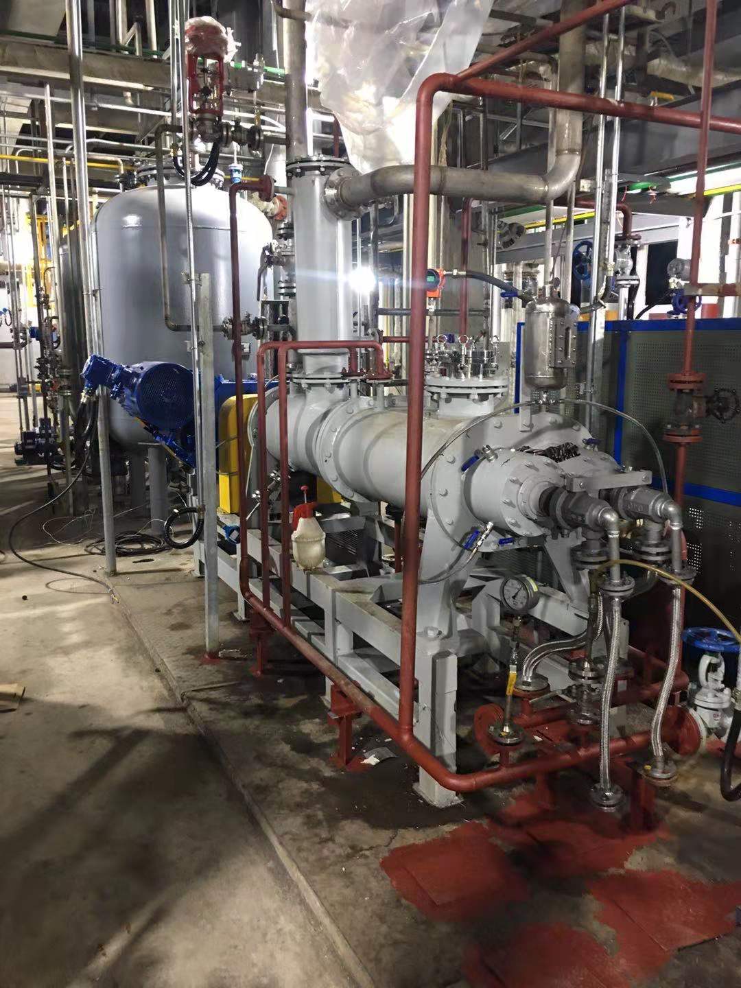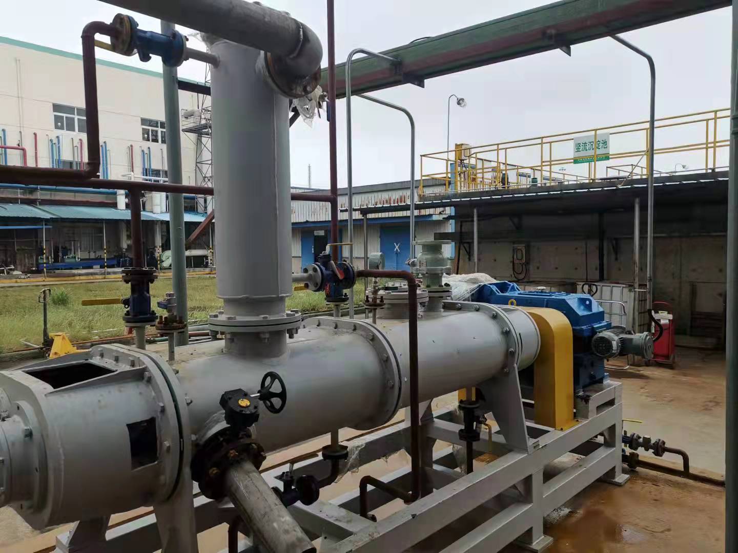 為了適應(yīng)在真空狀態(tài)下的操作,專門安裝了適用于高粘度物料的齒輪泵式出料器。該出料器直接安裝在主設(shè)備上,消除了設(shè)備內(nèi)的死角。齒輪泵式出料器在稍微超負荷的條件下工作,以保證物料能連續(xù)地排出,并輸入下一工段進行包裝。