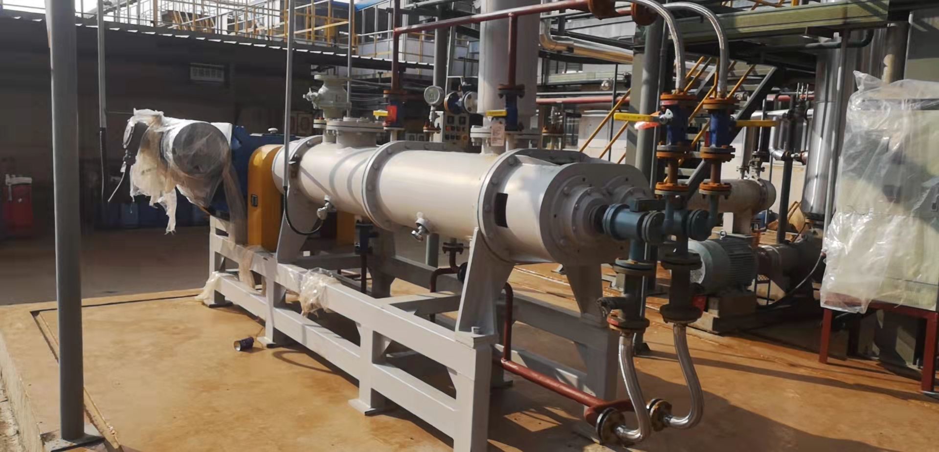 WZS型自清潔脫揮器的裝料系數(shù)通常范圍是50-80%,為氣-液分離和流動留出了足夠的自由空間。設(shè)備內(nèi)的平均裝料高度取決于出料端的堰板,該堰板的幾何形狀和高度可調(diào)節(jié)。與螺桿擠壓類設(shè)備不同,WZS型自清潔脫揮器內(nèi)物料的軸向輸送速度與攪拌軸轉(zhuǎn)速無關(guān),使之對進料量和組成的變化都具有極好的適應(yīng)性,并可減少設(shè)備的磨損。
