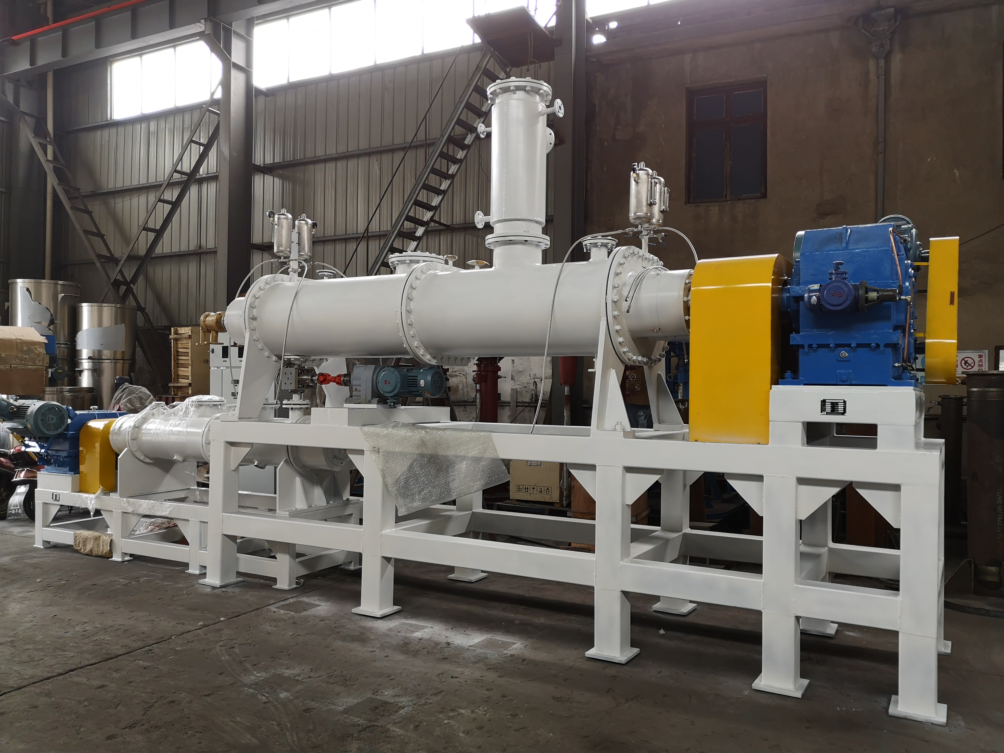 WZS型自清潔脫揮器的裝料系數(shù)通常范圍是50-80%,為氣-液分離和流動留出了足夠的自由空間。設(shè)備內(nèi)的平均裝料高度取決于出料端的堰板,該堰板的幾何形狀和高度可調(diào)節(jié)。與螺桿擠壓類設(shè)備不同,WZS型自清潔脫揮器內(nèi)物料的軸向輸送速度與攪拌軸轉(zhuǎn)速無關(guān),使之對進料量和組成的變化都具有極好的適應(yīng)性,并可減少設(shè)備的磨損。