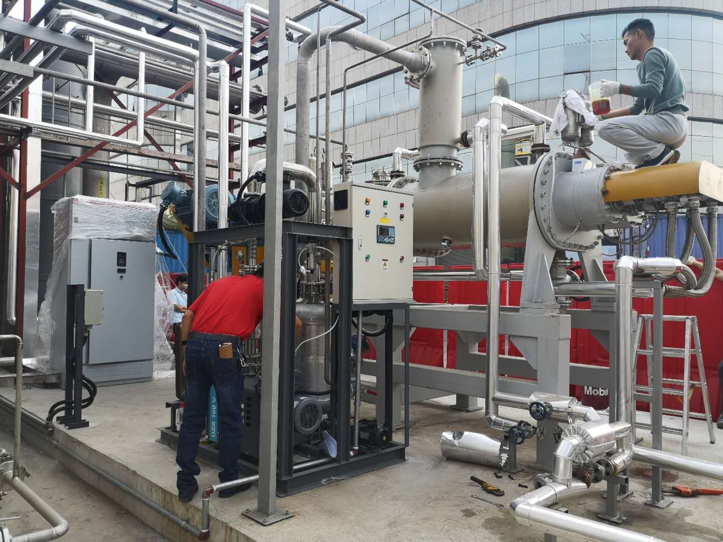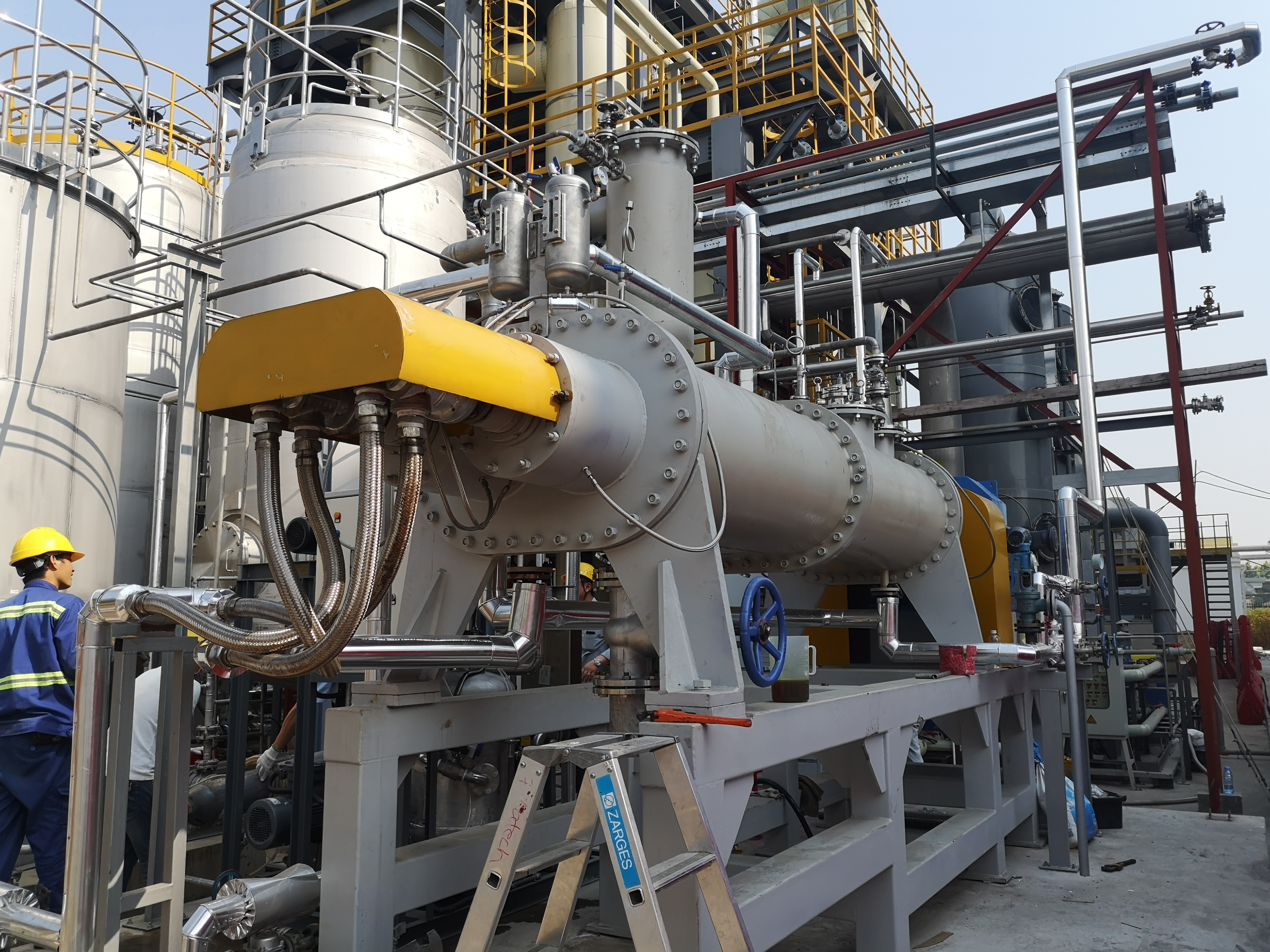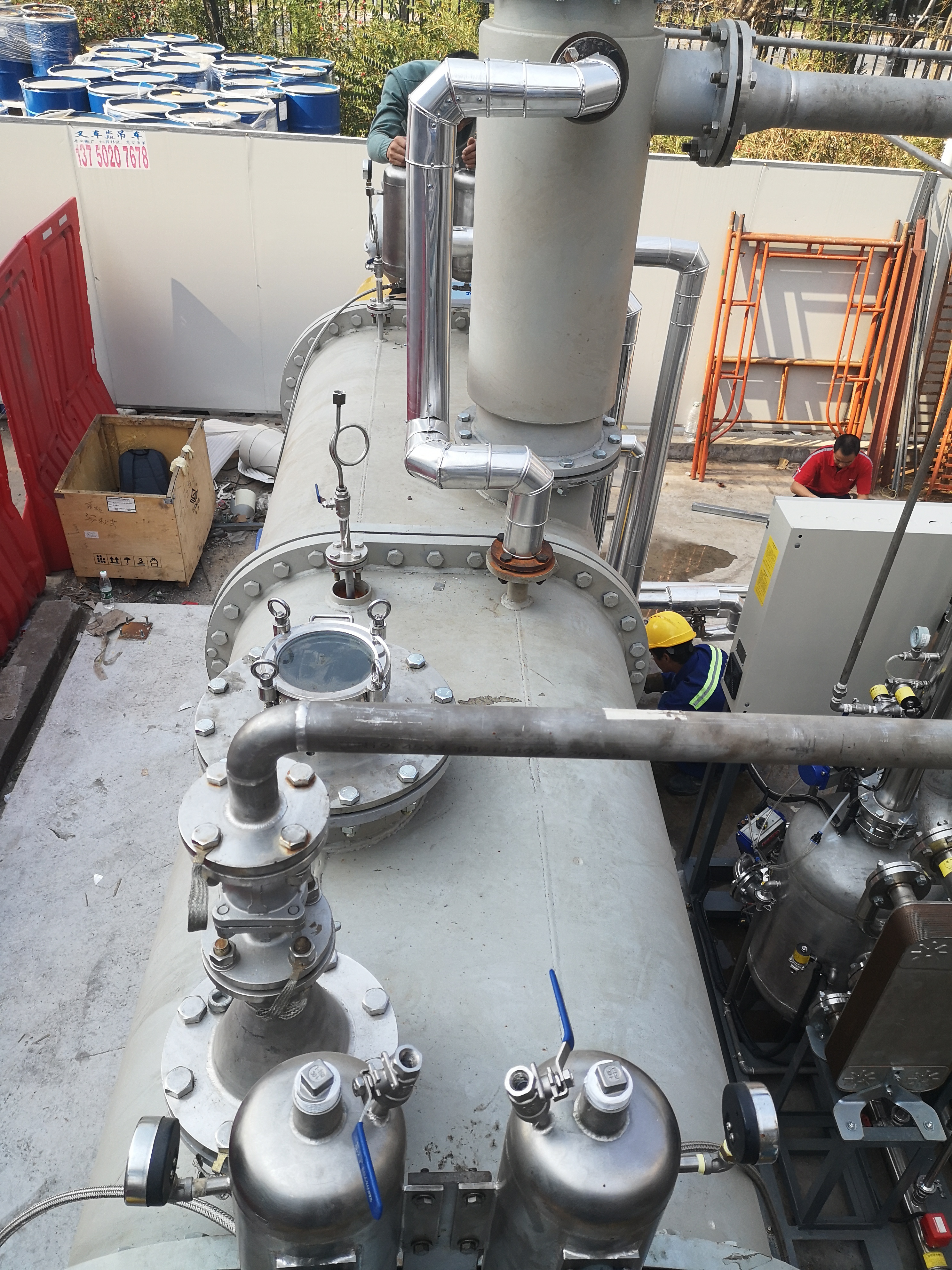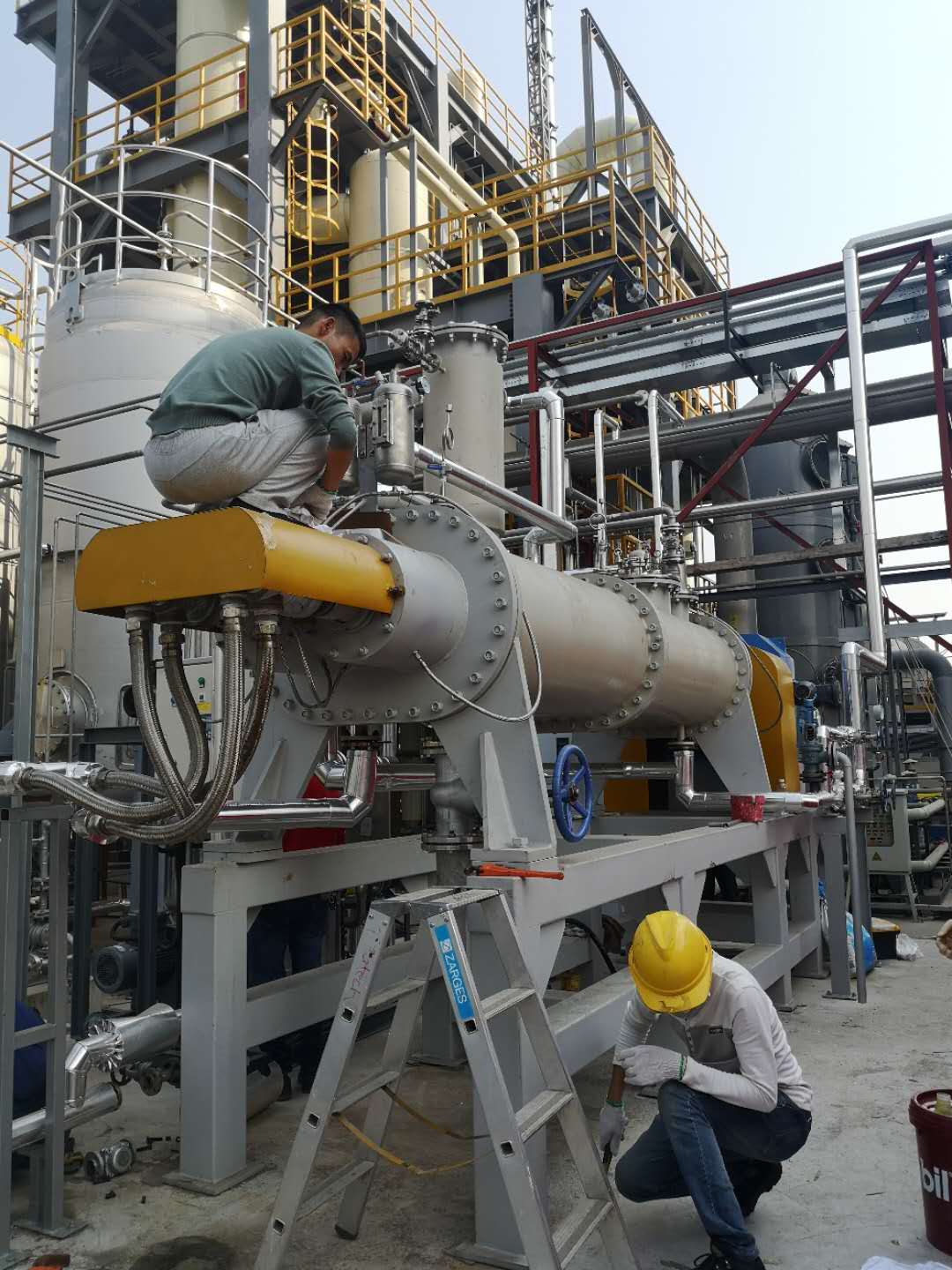 安裝在反應(yīng)器頂部的聚氣室用于氣體排放。聚氣室可加熱,以避免氣體冷凝和回流。由于聚氣室的口徑較大,汽體在聚氣室里的流速極低,即使在高真空的條件下,液滴的夾帶量仍極小。