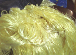 生產對位芳綸纖維通常是先將聚對苯二甲酰對苯二胺聚合物粉末(PPTA)溶解在濃硫酸中從而制成的粘稠紡絲漿液然后濕法噴絲制得。放熱溶解過程釋